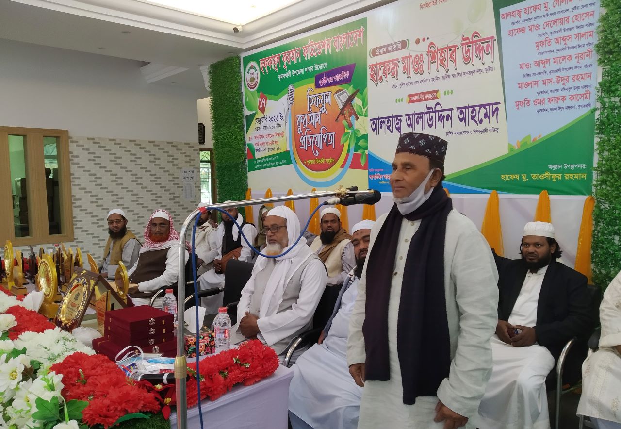 আলাউদ্দিন আহমেদ ফাউন্ডেশনের সার্বিক তত্বাবধানে আলাউদ্দিন নগরের রূপকার ও শিক্ষাপল্লীর জনক, বিশিষ্ঠ শিল্পপতি, সমাজসেবক ও শিক্ষানুরাগী আলহাজ¦ দানবীর আলাউদ্দিন আহমেদ এর সভাপতিত্বে প্রধান অতিথি কুষ্টিয়া পুলিশ লাইনস জামে মসজিদের খতিব হাফেজ মওলানা শিহাব উদ্দিন উপস্থিত থেকে শুক্রবার সকাল ৮টায় প্রথম অধিবেশনের হিফ্জুল কুরআন প্রতিযোগিতা উদ্বোধন করেন এবং এটা শেষ হয় দুপুর ১২টায়। শুক্রবার জুম্মার নামাজ শেষে উপজেলার ৩৩টি মাদ্রাসার শিক্ষক ও ছাত্রদেরকে নিজ হাতে খাবার পরিবেশন করেন আলাউদ্দিন আহমেদ।