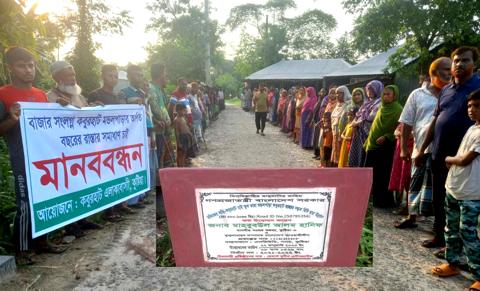 মানববন্ধনে এলাকাবাসীরা বলেন, কুষ্টিয়া সদর আসনের মাননীয় সংসদ সদস্য ও বাংলাদেশ আওয়ামীলীগের যুগ্ম সাধারণ সম্পাদক মাহবুবউল আলম হানিফ ভাই এলাকাবাসীর চলাচলের সুবিধার্থে পাকা রাস্তাটি নির্মাণের ব্যবস্থা করে দিয়েছেন। সরকারি সংশ্লিষ্ট দপ্তরের দায়িত্বপ্রাপ্ত কর্মকর্তারা বার বার এখানে এসে সকল ধাপ অনুসরন করে নির্মাণ কাজ শুরু করেন। নির্মাণ কাজের শেষ দিকে এসে রাস্তার একটি অংশ নিজ মালিকানাধীন জমি দাবি করে কাজ বন্ধ করে দিয়েছেন বিএনপির সাবেক এক প্রভাবশালী নেতা ও সাবেক বটতৈল ইউনিয়ন পরিষদ চেয়ারম্যান আব্দুল মজিদ বাবলু। মাননীয় এমপি মহোদয়ের উদ্বোধন করা রাস্তার কাজ বন্ধ করে বাবলু চেয়ারম্যান নোংরা রাজনীতির পরিচয় দিয়েছেন। একজন জনপ্রতিনিধি এরকম জনদুর্ভোগ তৈরি করতে পারে এটা না ঘটলে বিশ্বাস হতো না। মানববন্ধন থেকে এলাকাবাসীরা রাস্তাটির কাজ সমাপ্ত করে চলাচলের জন্য উন্মুক্ত করে দিতে মাননীয় সংসদ সদস্যের দৃষ্টি আকর্ষণ করেছেন।