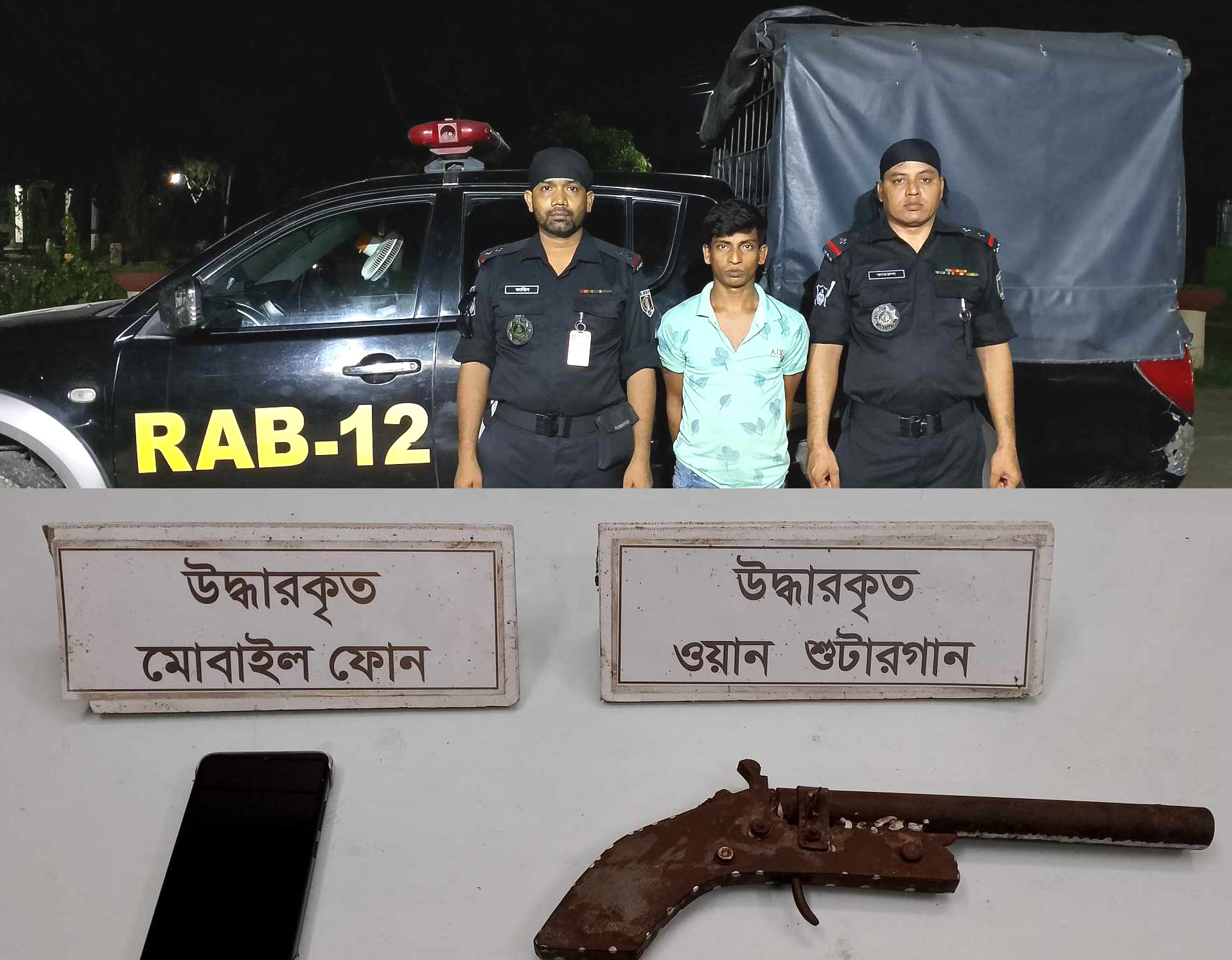 রেদোয়ানুল হক সবুজ : র্যাব-১২,সিপিসি-১ কুষ্টিয়া ক্যাম্পের অভিযানে ০১টি ওয়ান শুটার গান সহ অস্ত্রধারী সন্ত্রাসী মো: বিপুল শেখ (২৮) নামের একজন গ্রেফতার হয়েছে। সিরাজগঞ্জ র্যাব-১২ অধিনায়ক মারুফ হোসেন বিপিএম পিপিএম এর দিক নির্দেশনায় গত সোমাবার ০৮ জুলাই রাত আনুমানিক ৯টার সময় সিপিসি-১, কুষ্টিয়া কোম্পানীর একটি চৌকষ আভিযানিক দল গোপন সংবাদের ভিত্তিতে কুষ্টিয়া জেলার সদর থানাধীন ভাদালিয়া গ্রামে অভিযান পরিচালনা করে ০১টি ওয়ান শুটারগান, ০১টি মোবাইল এবং ০২টি সিম সহ আসামি মোঃ বিপুল শেখকে গ্রেফতার করে। গ্র্রেফতারকৃত আসামী বিপুল শেখ কুষ্টিয়া সদর উপজেলার কমলাপুর গ্রামের হাবিল শেখ এর ছেলে।