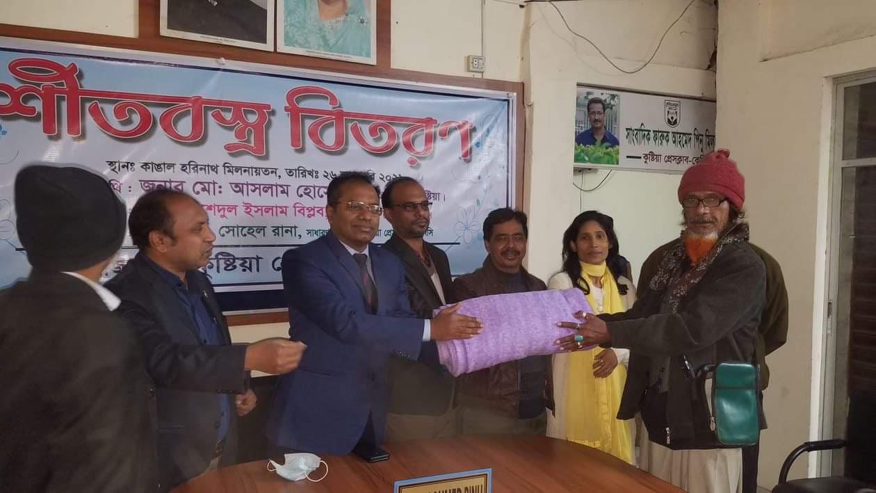 কুষ্টিয়া প্রেস ক্লাব কেপিসির কাঙাল হরিনাথ মিলনায়তনে ২৬জানুয়ারি মঙ্গলবার দুপুরে শীতবস্ত্র বিতরণ করেন মিডিয়াবান্ধব জেলা প্রশাসক মোঃ আসলাম হোসেন।শীতবস্ত্র বিতরণে তিনি বলেন, এই জেলায় কাউকে শীতের কষ্ট পেতে দেবোনা। মাননীয় প্রধানমন্ত্রী শীতার্ত মানুষের পাশে দাঁড়ানোর আহবান জানিয়েছেন। প্রশাসনের পাশাপাশি সমাজের বিত্তবানদের এগিয়ে আসারও অনুরোধ জানান। কুষ্টিয়া জেলায় কোন অসহায় মানুষ শীতার্ত থাকবে না।কুষ্টিয়া প্রেসক্লাব কেপিসির সভাপতি রাশেদুল ইসলাম বিপ্লব, সহ সভাপতি মীর আল আরেফিন বাবু, জামিল হাসান খান খোকন, সাধারন সম্পাদক সোহেল রানা, যুগ্ম সম্পাদক আরিফুজ্জামান লিপটন, কোষাধ্যক্ষ মিলন উল্লাহ, প্রচার ও প্রকাশনা সম্পাদক মাহমুদ হাসান, ক্রীড়া ও সমাজকল্যাণ সম্পাদক আখতারুজ্জামান মৃধা পলাশ, নির্বাহী সদস্য আফরোজা আক্তার ডিউ, তৌফিক তপন, ইসমাইল হোসেন সহ সাধারণ সদস্যবৃন্দ এ সময় উপস্থিত ছিলেন।