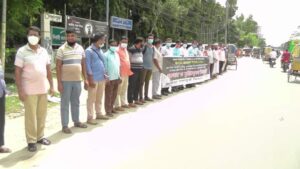 সোমবার দুপুর ১২টায় কুষ্টিয়া-খুলনা মহাসড়কের সাদ্দাম বাজার মোড়ে গণপূর্ত অফিসের সামনে অনুষ্টিত উক্ত মানববন্ধনে কুষ্টিয়া গণপুর্ত বিভাগের নির্বাহী প্রকৌশলী মোঃ জাহিদুল ইসলাম, গণপুর্ত সিবিএর সভাপতি মো: জিল্লুর রহমান, সাধারন সম্পাদক ও কুষ্টিয়া জেলা শ্রমিকলীগের যুগ্ম-সম্পাদক এইস এম মতিউর রহমানসহ গণপূর্ত বিভাগের কর্মকর্তা ও কর্মচারীরা অংশ গ্রহন করেন।