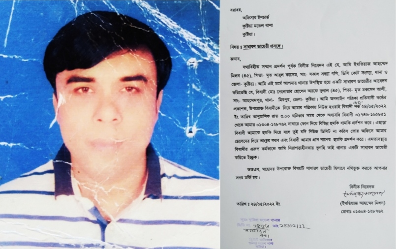 সাধারণ ডায়েরির সূত্র মতে দুলাল বলেন, তুই যদি নিউজ ডিলিট না করিস তোর অফিস আমাদের ছেলেদের দিয়ে ভাঙচুর করাব সেই সাথে প্রাণনাশের হুমকিও প্রদান করে। তার এরূপ হুমকিতে প্রতিবাদী কন্ঠে'র প্রকাশক নিরাপত্তাহীন হয়ে পড়ায় গত ২৪ তারিখ বিকেলে কুষ্টিয়া সদর মডেল থানায় একটি সাধারণ ডায়েরি করেন, যার নম্বর ১৪৫৩।