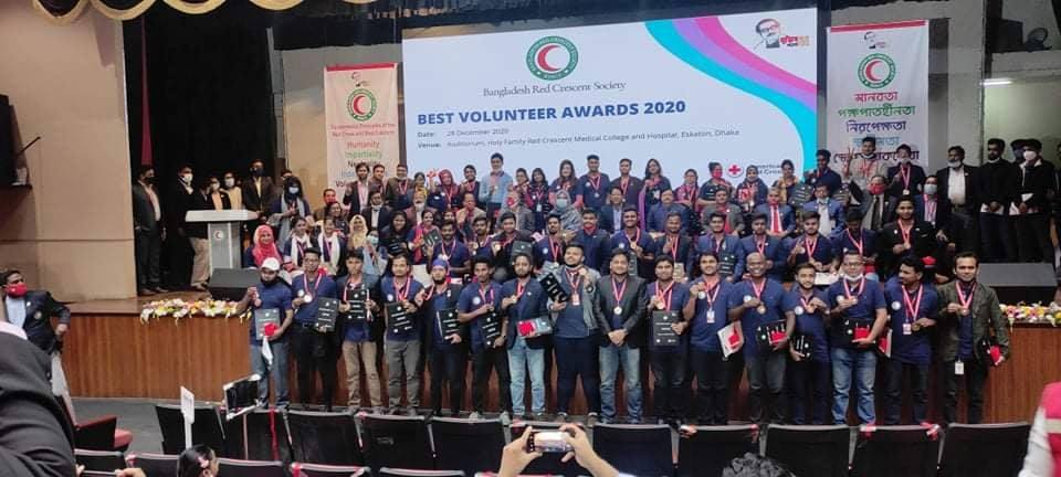 বাংলাদেশ রেড ক্রিসেন্ট- এর উদ্যোগে শ্রেষ্ট স্বেচ্ছাসেবক নির্বাচিত ৬৯ জন স্বেচ্ছাসেবকবৃন্দদের মাঝে ২৮ ডিসেম্বর সোমবার’২০ ঢাকা হলি ফ্যামেলি রেড ক্রিসেন্ট মেডিকেল কলেজ এবং হাসপাতালের মিলনায়তনে শ্রেষ্ঠ স্বেচ্ছাসেবক মেডেল এবং সনদ পত্র দেওয়া হয় । উক্ত অনুষ্ঠানে প্রধান অতিথি হিসেবে উপস্থিত ছিলেন বাংলাদেশ সরকার এর মাননীয় মন্ত্রী দুর্যোগ ত্রান ও পূনর্বাসন এনামুল রহমান ।