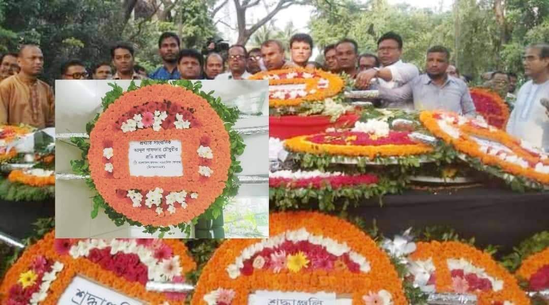 মোঃ শহিদুল ইসলাম : ২৮ মে, ২০২২ খ্রী: বাংলার কলম হিরো, প্রখ্যাত সাংবাদিক,লেখক,কলামিস্ট,ভাষা সৈনিক প্রয়াত আব্দুল গাফফার চৌধুরীকে ফুলেল শ্রদ্ধা জানিয়ে বিদায় জ্ঞাপন করেছেন বাংলাদেশ মফস্বল সাংবাদিক ফোরাম (বিএমএসএফ)। শনিবার বিকেলে জাতীয় প্রেসক্লাবের সামনে মরহুমের জানাযা শেষে তাঁকে জাতীয় প্রেসক্লাব,ঢাকা সাংবাদিক ইউনিয়ন, ঢাকা রিপোর্টার্স ইউনিটিসহ বিভিন্ন সংগঠনের পক্ষ থেকে শেষ শ্রদ্ধা জানায়।
