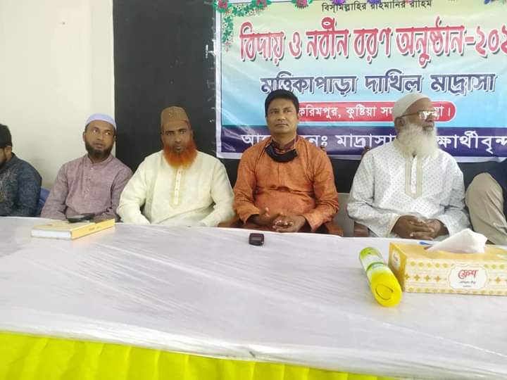 কুষ্টিয়া সদর উপজেলা ইবি থানার ১০নং উজানগ্রাম ইউনিয়নের মৃত্তিকাপাড়া দাখিল মাদ্রাসায় বিদায় ও নবীন বরন অনুষ্ঠান অনুষ্ঠিত হয়। বুধবার ১০/১১/২১ তারিখ সকাল ১০ ঘটিকা সময় উক্ত বিদায় ও নবীন বরণ অনুষ্ঠান অনুষ্ঠিত হয়।