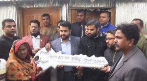 রেদওয়ানুল হক সবুজ : কুষ্টিয়ার কুমারখালীর গৃহহীন বিধবা রেজিয়া বেগমের নতুন ঘরের চাবি হস্তান্তর করলেন এপেক্স ক্লাব অব কুষ্টিয়া। বুধবার (১৮ জানুয়ারি ২০২৩) বিকেলে ঘরের চাবি হস্তান্তর করা হয়েছে। চাবি হস্তান্তর অনুষ্ঠানে প্রধান অতিথি হিসেবে উপস্থিত ছিলেন কুমারখালী উপজেলা নির্বাহী অফিসার বিতান কুমার মন্ডল। প্রধান অতিথি তার বক্তব্যে বলেন, এপেক্স ক্লাব অব কুষ্টিয়া একটি মহৎ উদ্যোগ নিয়ে সেটা বাস্তবায়ন করেছেন। আমরা রেজিয়া বেগমের মানসিক প্রতিবন্ধী ছেলেটাকে সুচিকিৎসার ব্যবস্থা করব। তার আর যে অন্য সব সমস্যাগুলো আছে সেগুলোর সমাধান খুব দ্রুত করা হবে।