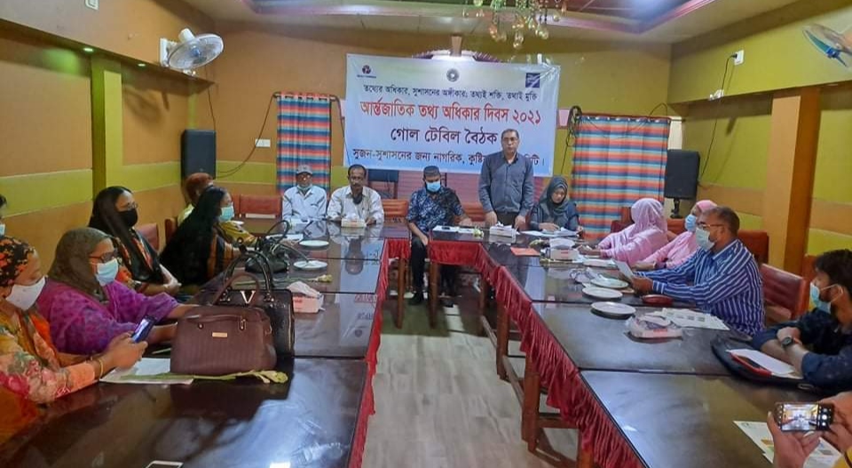 "তথ্য আমার অধিকার,জানতে হবে সবার" এই প্রতিপাদ্যকে সামনে রেখে সুজন ও পিএফজি (পিচ ফেসিলিটটরস গ্রুপ)'র যৌথ উদ্যোগে কুষ্টিয়াতে আন্তর্জাতিক তথ্য অধিকার দিবস পালিত হয়েছে। বৃহস্পতিবার বেলা ১১ টার সময় শহরের চিলিঢ পার্কে অনুষ্ঠিত এ অনুষ্ঠানের এম ইফতেখার হোসেনের সভাপতিত্বে প্রধান অতিথি ছিলেন, আসিফ ইকবাল।