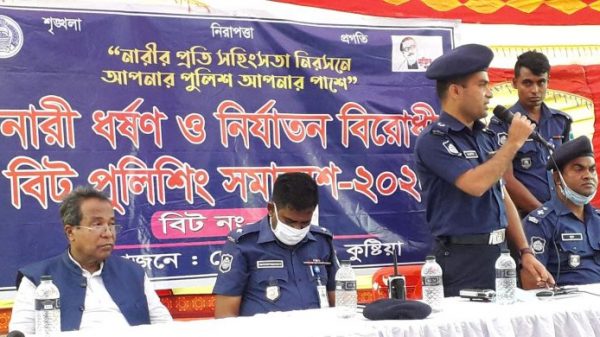 কুষ্টিয়ায় “নারীর প্রতি সহিংসতা নিরসনে আপনার পুলিশ আপনার পাশে” এ প্রতিপাদ্য সামনে রেখে কুষ্টিয়া মডেল থানা পুলিশের আয়োজনে কুষ্টিয়া শহরের চরথানাপাড়া বিট পুলিশিং সমাবেশ অনুষ্ঠিত হয়েছে। শনিবার বিকাল ৩ টায়