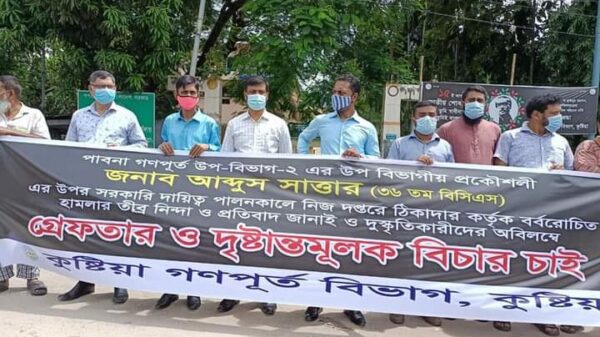 পাবনা গণপূর্ত উপ-বিভাগ ২ এর উপবিভাগীয় প্রকৌশলী আব্দুস সাত্তারের উপর সরকারী দায়িত্ব পালন কালে নিজ দপ্তরে ঠিকাদার কর্তৃক বর্বরোচিত হামলার তীব্র নিন্দা ও প্রতিবাদ জানিয়ে দুষ্কৃতিকারীদের অবিলম্বে গ্রেফতার ও দৃষ্টান্তমুলক